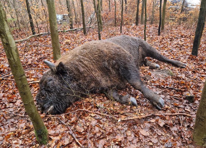 Żubra z przestrzeloną szyją znaleziono 8 stycznia br. na terenie Koła Łowieckiego „Rogacz” Stargard. Fot. ZTP