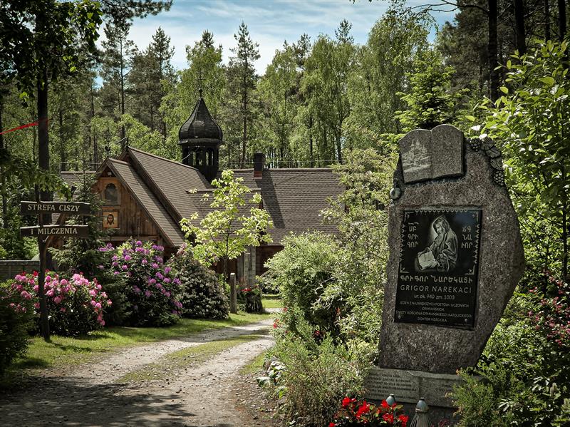 To miejsce pośrodku lasu. Wokół cisza, którą zakłóca jedynie brzęczenie trzmiela. „Pokój i dobro" - głosi napis na drewnianej tabliczce na bramie, która prowadzi do pustelni. Zaraz obok widzimy niewielkie, porosłe trawą wzniesienie, które mogło być miejscem kultu pogańskiego. Ale ścieżka - i wzrok - prowadzą nas do innego miejsca. To drewniany niewielki kościół, który jest częścią pustelni franciszkańskiej na Świętej Górze Polanowskiej.