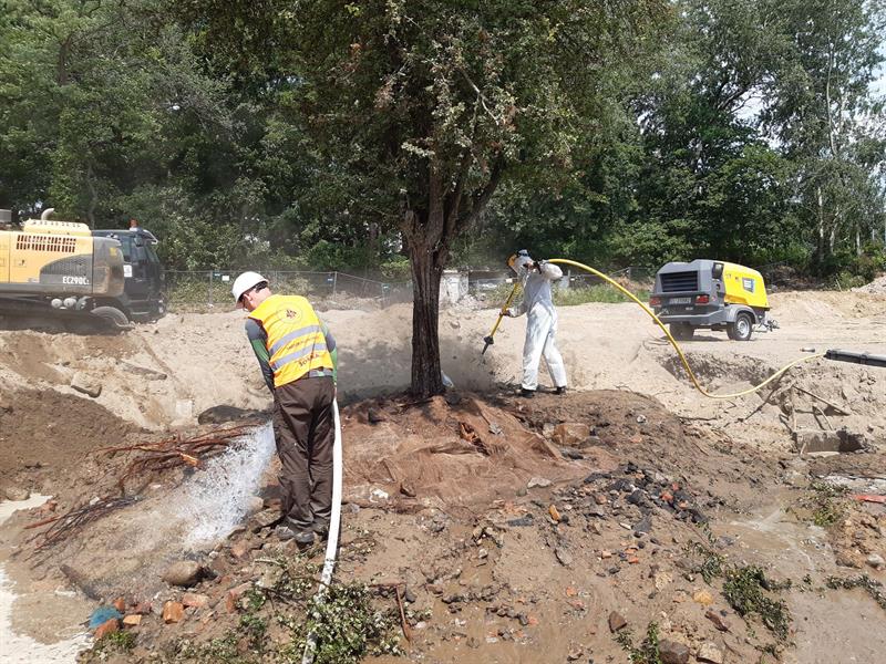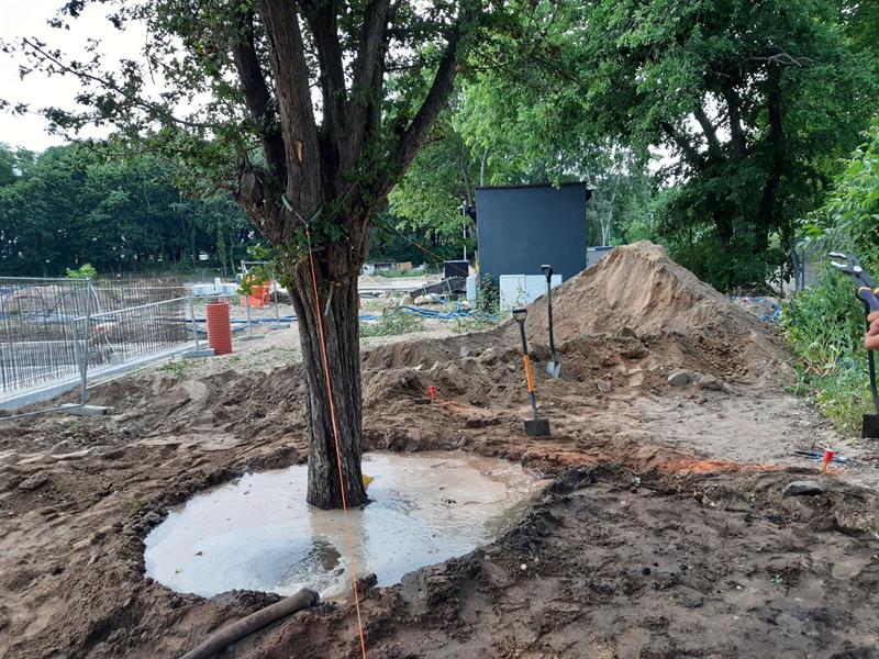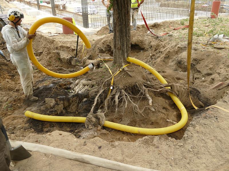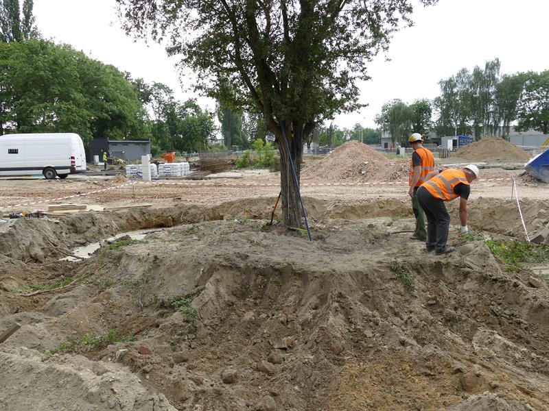 Przy ul. Twardowskiego trwa budowa Wojewódzkiej Stacji Pogotowia Ratunkowego. W kolizji z tą inwestycją celu publicznego rosło jedno drzewo – wiekowy głóg. Nie został wycięty, tylko przesadzony metodą Air Spade, pierwszy raz zastosowaną w Szczecinie. Fot. Krzysztof JANKOWSKI