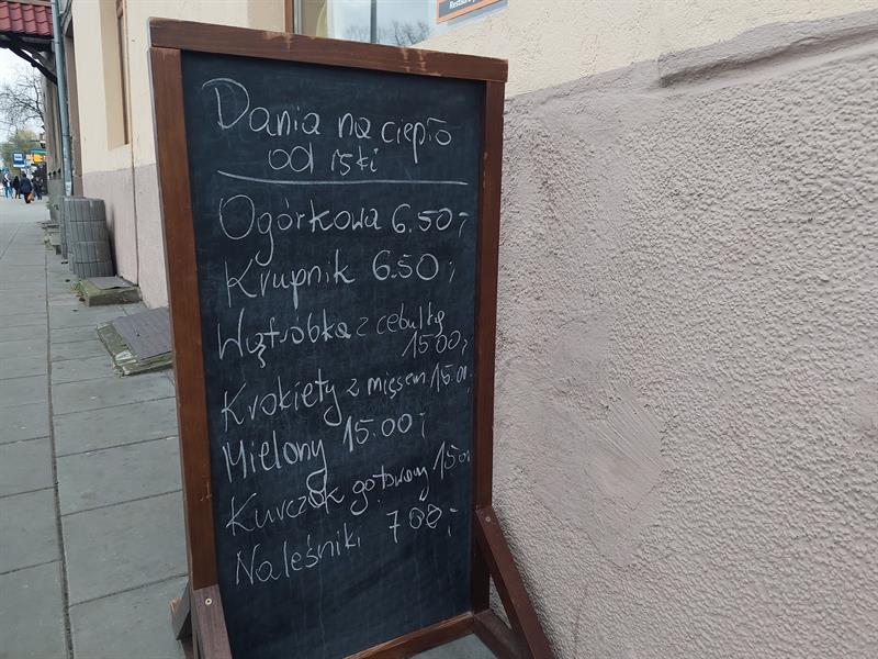 A w domciu to już ugotować obiadku nie można? Można, tylko się nie chce. Więc płaćcie i nie marudźcie. Ogórkowa 6,50, wątróbka 15 zeta.... no bez jaj. No, ale skoro nie patrzyło się mamusi na ręce w kuchni, to teraz ugotowanie wody do zalania herbaty jest wyzwaniem dla młodych żonek.