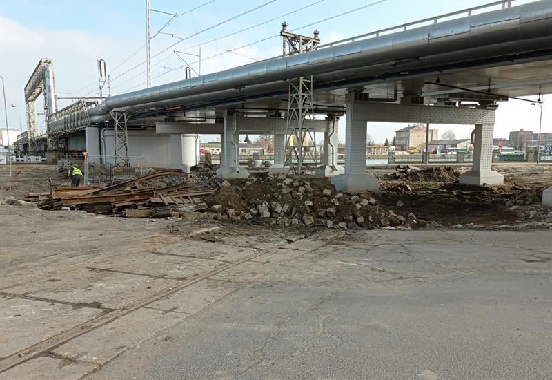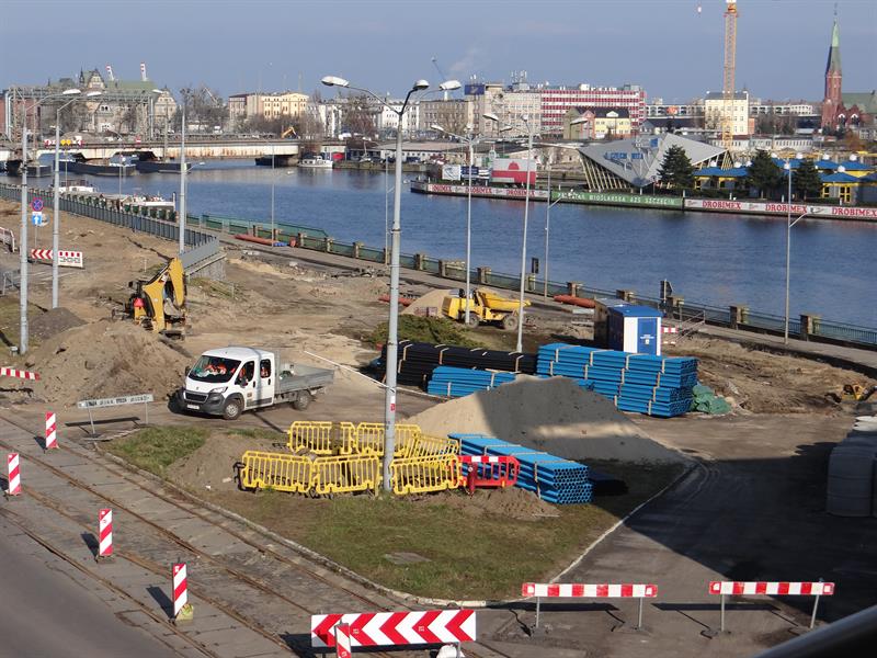 Coraz więcej zmian z upływem każdego tygodnia przynosi odsłona torowej rewolucji na Pomorzanach oraz jednej z dwóch tras tramwajowych, która do nich prowadzi i jest na kilku odcinkach w trakcie przebudowy - ta wzdłuż ulic Nabrzeże Wieleckie, Krzysztofa Kolumba i Smolańskiej w Szczecinie. Na starej pętli nie ma już ani jednego drzewa, a tuż za nią ciężki sprzęt niweluje teren po zlikwidowanych działkach. Równocześnie na szlaku nadodrzańskim drogowcy z ZUE SA. i spółek podwykonawczych w rozebranych fragmentach starych torów i jezdni układają rury nowych instalacji, w tym gazowej, kanalizacyjnej i sieci elektroenergetyczne.