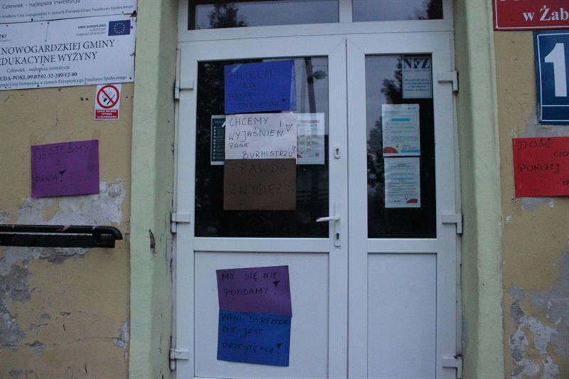 W trybie natychmiastowym burmistrz Nowogardu zwolnił Karolinę Jaklińską-Czyżak z pełnienia funkcji dyrektora niedużej Szkoły Podstawowej w Żabowie. Tymczasem Rada Rodziców stoi murem za dyrektorką, która została wyprowadzona ze szkoły w asyście czworga pracowników Urzędu Miejskiego, tj.: kadrowej, informatyka i dwójki przedstawicieli Zespołu Ekonomiczno-Administracyjnego Szkół.