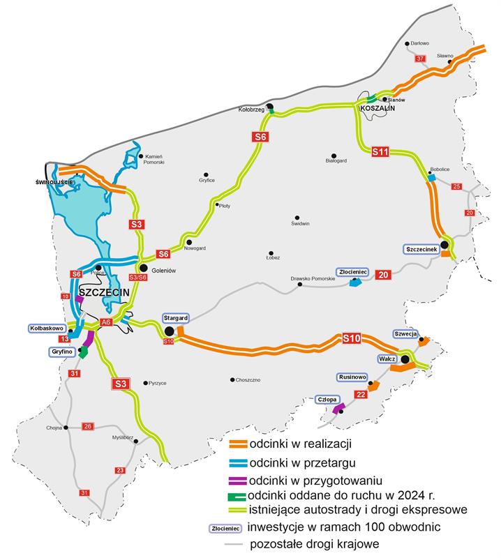 Blisko 10 miliardów złotych - to wartość inwestycji o łącznej długości 233 km, będących w realizacji na koniec 2024 roku na zachodniopomorskich drogach krajowych. Było to możliwe między innymi dzięki podpisaniu kolejnych umów na wykonanie sześciu odcinków S10 od Stargardu do Wałcza i czterech obwodnic mających razem wartość 3,84 mld zł.