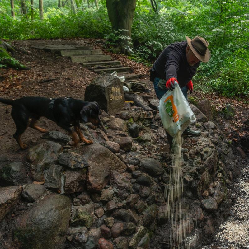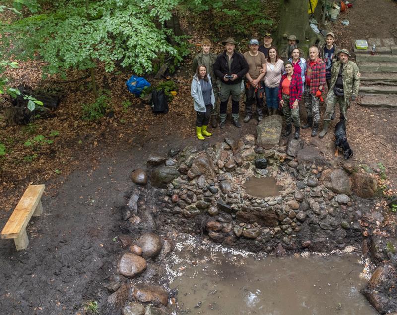Na głównym z kamieni widniał napis „Rudolf". Z historycznych źródeł wiadomo, że był głównym elementem fontanny, jaka znajdowała się pomiędzy dawnym młynem a restauracją na obrzeżach Puszczy Bukowej. Natomiast nadal pozostaje otwarte pytanie, komu tak naprawdę - oryginalnie - został poświęcony przyleśny wodotrysk sprzed ponad wieku.