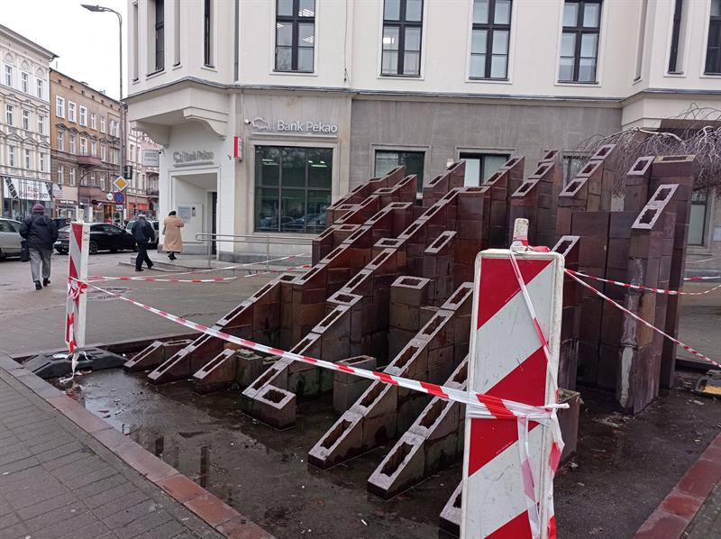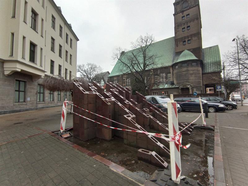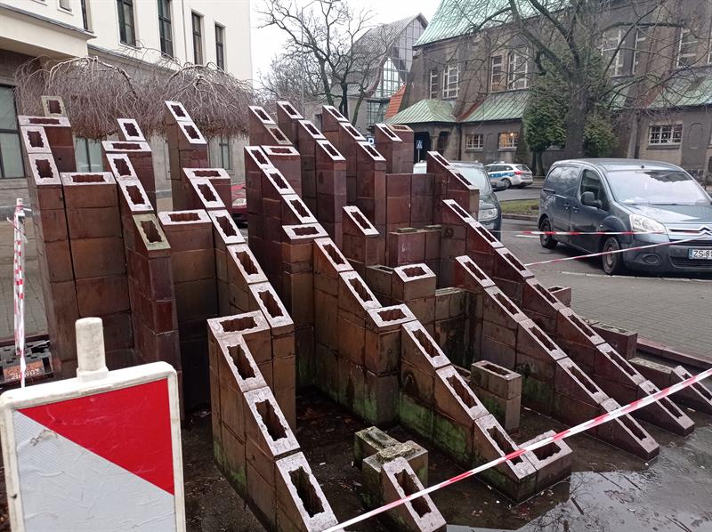 Już mało kto pamięta, że w chwili oddania do użytku, czyli 25 lat temu, ów tytułowy „Labirynt" - nowoczesna rzeźba, zaprojektowana przez prof. Ryszarda Wilka - był zraszany wodną mgiełką ze ściany niecki fontanny. W takiej formie nie przetrwał bowiem nawet dwóch sezonów. Natomiast wszyscy od lat mają okazję obserwować, jak ta wykonana z klinkierowych pustaków konstrukcja przestrzenna ulega stałej degradacji. Mimo usytuowania w prestiżowym punkcie miasta, nie oparła się też wandalom: notorycznie jest rozbijana, traktowana jak pisuar, zarzucana odpadami.