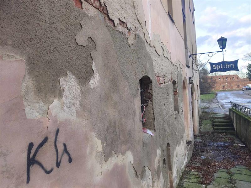 Trzypiętrowy obiekt, przykryty dwuspadowym dachem, wpisany do rejestru zabytków jest od kilku lat w tragicznym stanie. Odpada z niego tynk, z roku na rok