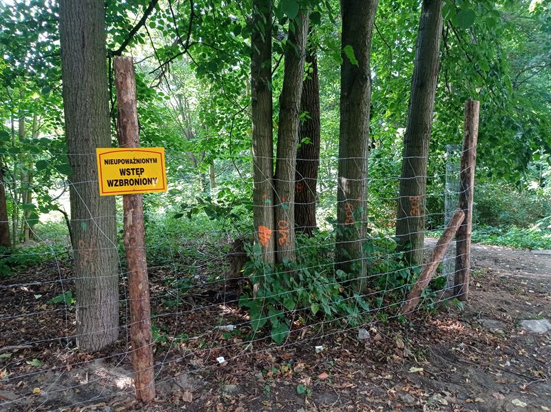 Na ogrodzeniu zielonej enklawy pojawiły się tablice informujące: „Nieupoważnionym wstęp wzbroniony".