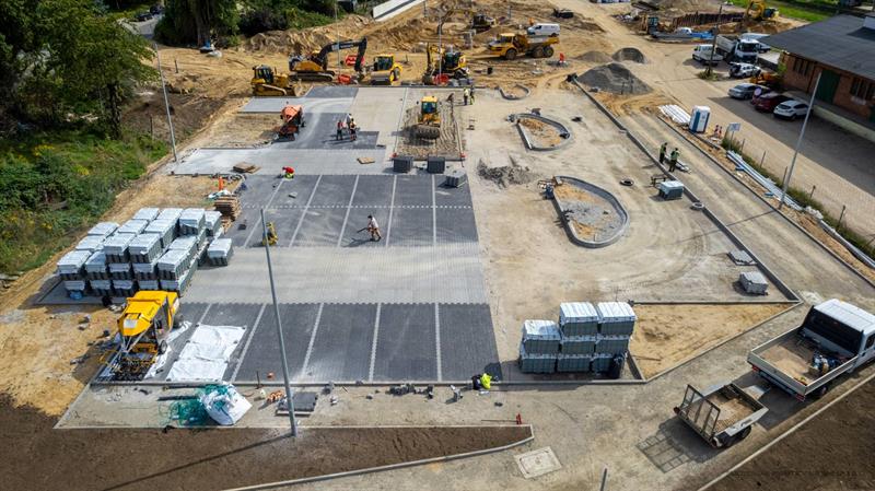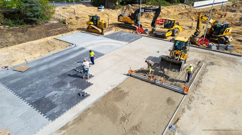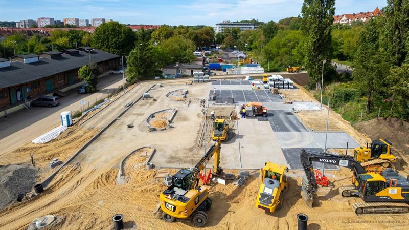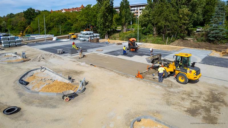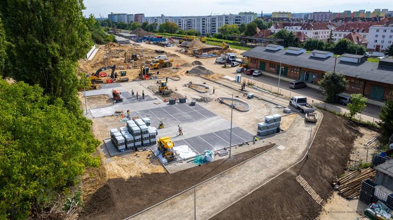 - Aktualnie trwają prace przy budowie fragmentu placu parkingowego. Wykonane zostały podbudowy i układana jest nawierzchnia miejsc postojowych - informuje Piotr Zieliński, rzecznik miasta ds. inwestycji. - Posadowiono część słupów oświetleniowych. Kontynuowane są ponadto prace związane z budową kanalizacji deszczowej i prace elektryczne.