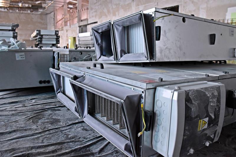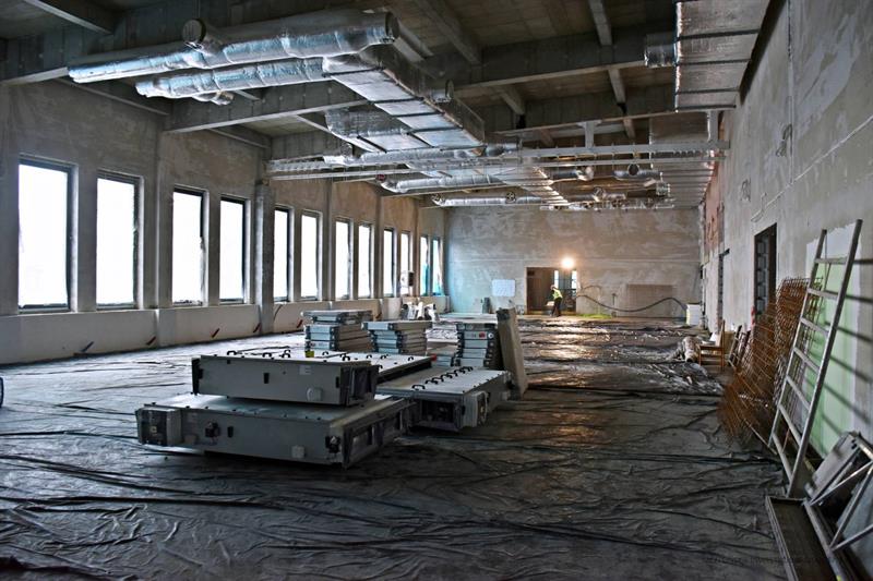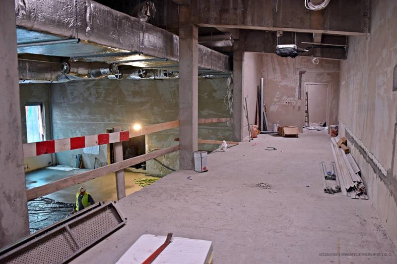 Prace skupiają się obecnie na wykonywaniu instalacji sanitarnych i elektrycznych. Trwa montaż urządzeń wentylacji obiektu, wykonywana jest instalacja hydrantowa, a w przyszłej sali koncertowej w minionych dniach wykonana została nowa posadzka. Rozpoczął się też montaż sufitów podwieszanych w części biurowej. Poniżej piętra Domu Kultury „Słowianin" wykonywane są zabezpieczenia przeciwpożarowe belek stropowych.
