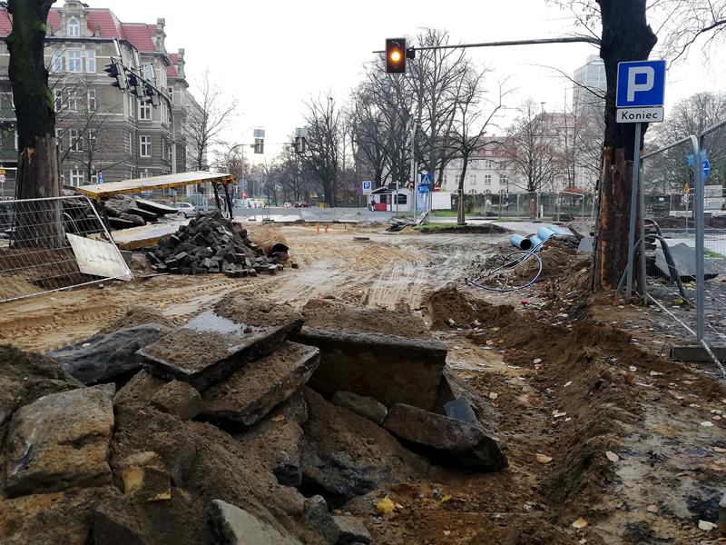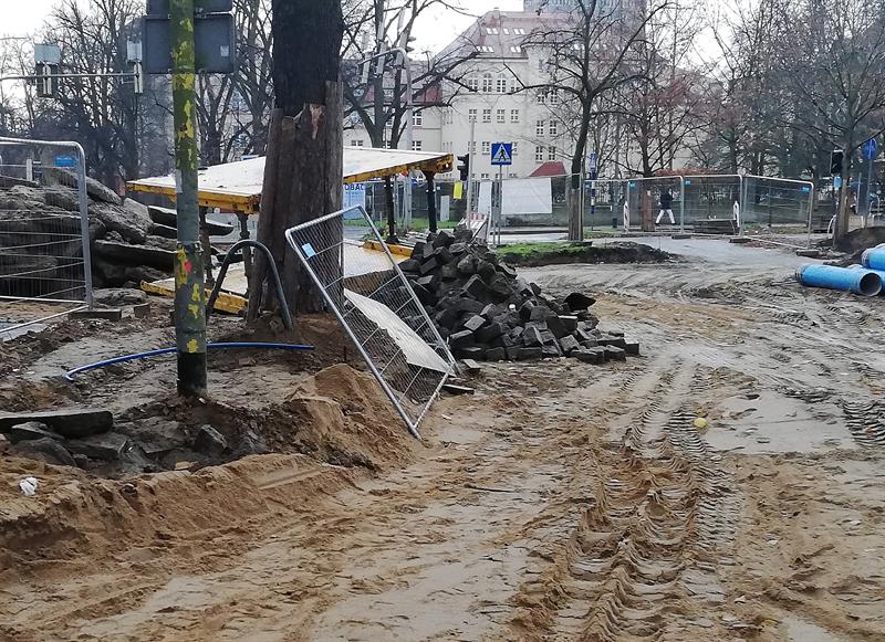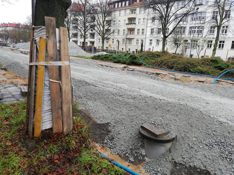 Na początku grudnia zwróciliśmy uwagę opinii publicznej (publikacja pt. „Lipy na budowie") na to, jak wygląda „bieżące utrzymanie" zieleni na odcinku al. Papieża Jana Pawła II - od ul. Fałata po pl. Grunwaldzki. Na wykopy, które miejscami są prowadzone w odległości mniejszej niż pół metra od pni. Między innymi także na ciężki sprzęt oraz materiały budowlane składowane niemal na styku z drzewami.