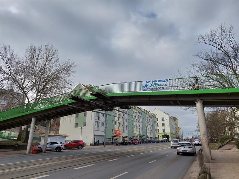 Na Trasie Zamkowej oraz kładce nad ul. Wyszyńskiego w Szczecinie pojawiły się transparenty z hasłami: „Nie niszczcie naszej przyszłości. Nie wycinajcie drzew. #RazemDlaPrzygodnej". Natomiast do szczecińskich mediów dotarła odezwa od mieszkańców Gumieniec, przedstawiających się jako „rodzice dzieci oczekujących na przedszkole, niezgadzający się na manipulację i na zniszczenie drzew".