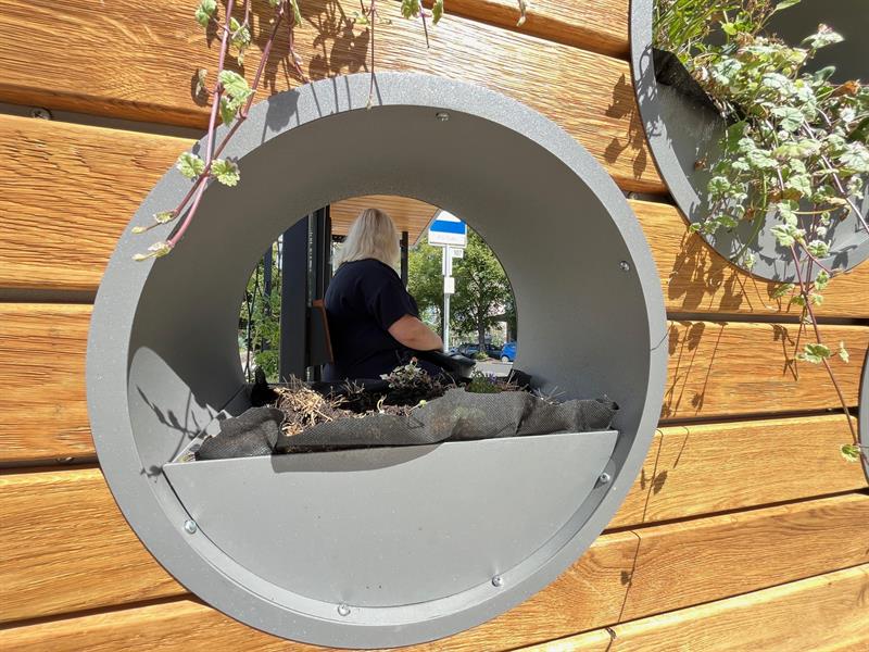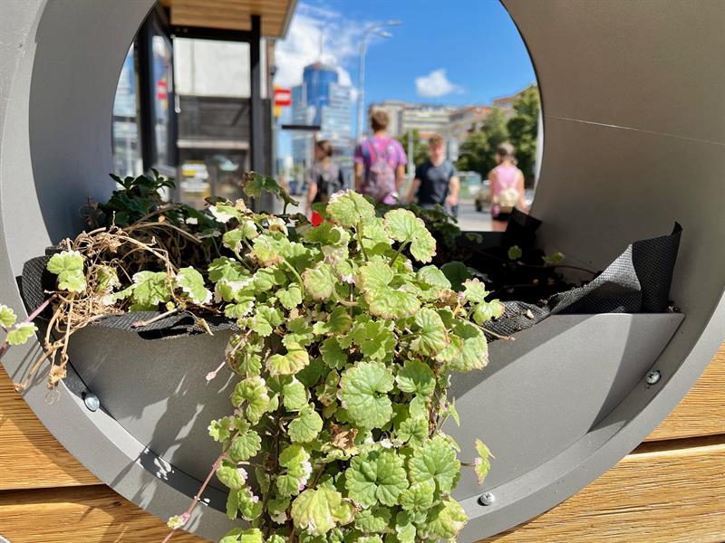 Rosnące w donicach zielonych wiat rośliny prezentują się lepiej niż jeszcze miesiąc temu, podczas fali upałów. Wykorzystane kwiaty nie wytrzymały warunków pogodowych i zaczęły usychać. Miasto, jak zapowiada wiceprezydent, będzie testować nowe gatunki. Fot. Piotr SIKORA