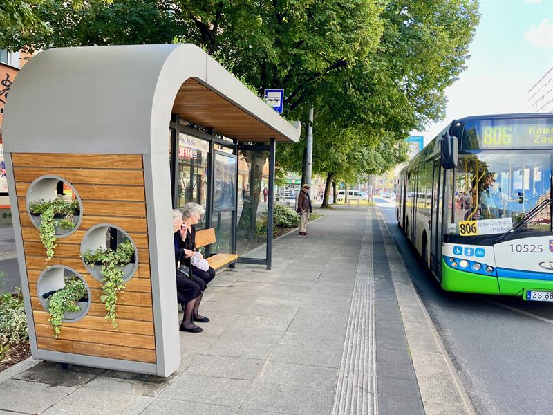 Niedawno w centrum Szczecina stanęły tak zwane zielone wiaty, czyli nowoczesne przystanki, które charakteryzują się oryginalnym dizajnem oraz roślinnością. Tylną siatkę wiaty pokrywają pnącza, boczną ścianę zaś - doniczki z kwiatami. Niestety, podczas intensywnych lipcowych upałów rośliny w doniczkach zaczęły usychać, choć są one wyposażone w system retencji wody. Miasto zapowiada, że w najbliższym czasie wprowadzone zostaną i przetestowane nowe gatunki roślin.