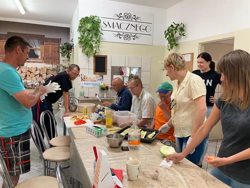 Domowa pizza z włoskiego przepisu czy sushi - w kuchni schroniska dla osób bezdomnych to coś wyjątkowego. Nad przygotowaniem pysznych dań przy jednym stole pracuje wspólnie kilkanaście osób. Cel jest taki, by ten obiad kiedyś ugotować „na swoim".