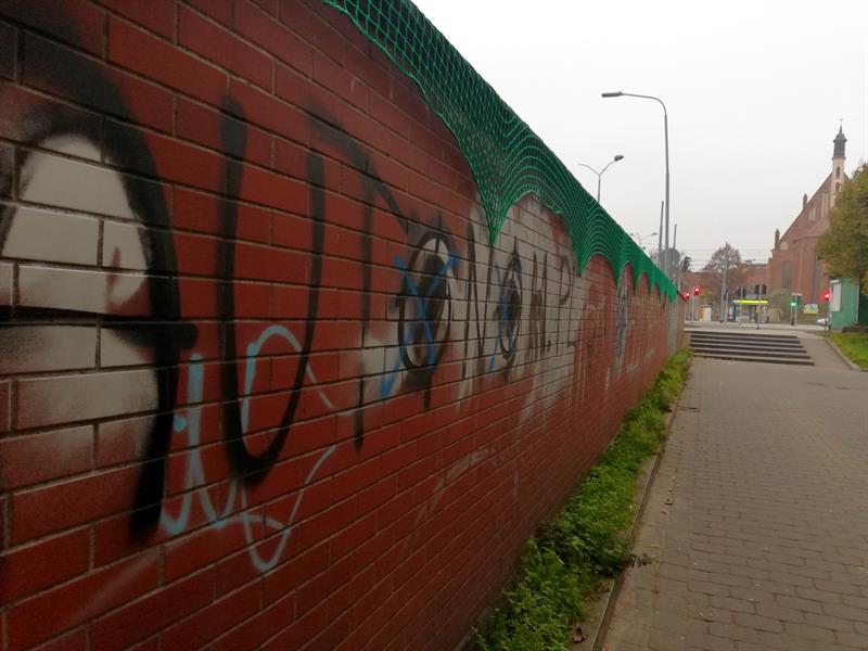 Mur z betonu i cegły stoi pomiędzy ul. Małą Odrzańską i Wielką Odrzańską. Teraz graniczy z placem przebudowy węzła komunikacyjnego „Wyszyńskiego". Sam też wymaga remontu, o czym świadczy nie tylko szpecące go pseudograffiti, ale przede wszystkim siatka zabezpieczająca jego górne uszkodzone fragmenty przed niekontrolowanym upadkiem. Słony wydatek z efektem, który - przynajmniej niektórym radnym - kojarzy się z utrzymywaniem swoistego wrażenia „getta mieszkaniowego".