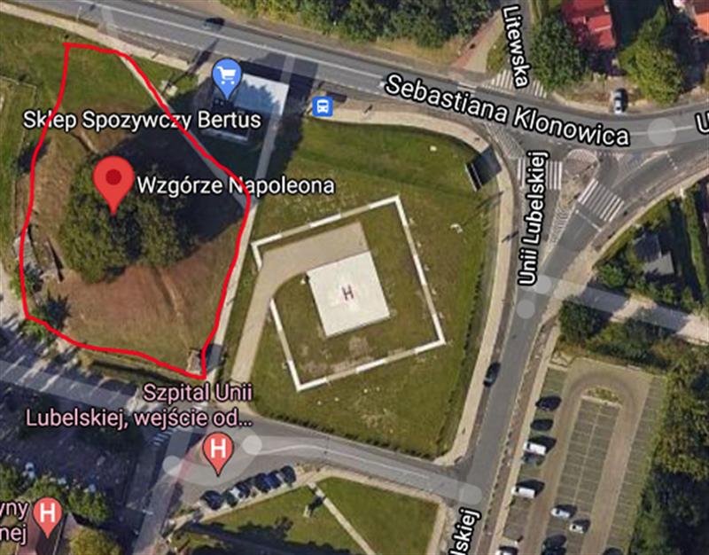 Wzgórze jest położone opodal odnowionego parku im. Teresy Hulboj, u zbiegu ul. Klonowica i Litewskiej. Z widokiem na szpital przy ul. Unii
