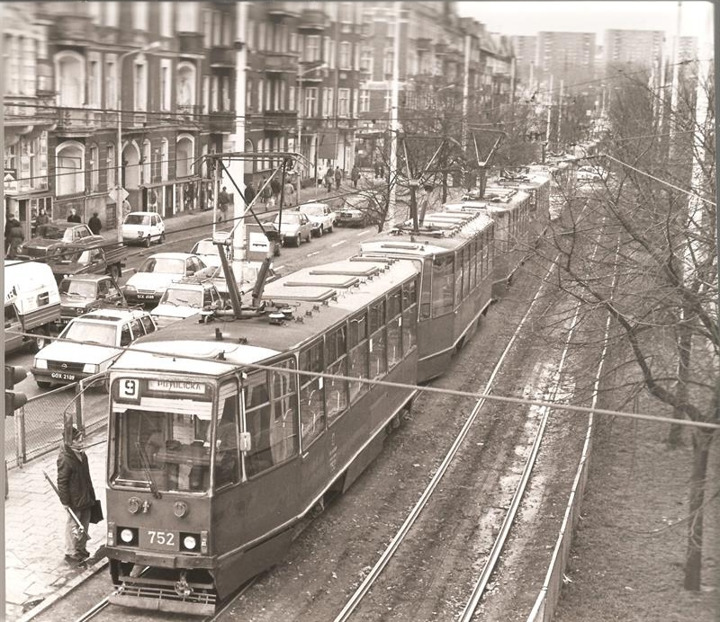 Jeszcze nie tak dawno linie te obsługiwały tramwaje, które bezpowrotnie zniknęły ze szczecińskich ulic. Były to wozy typu 102Na oraz 105N. Ich producentem była firma Konstal mająca swoją siedzibę w Chorzowie. To znana w kraju wytwórnia pojazdów szynowych takich jak wagony metra i tramwaje.