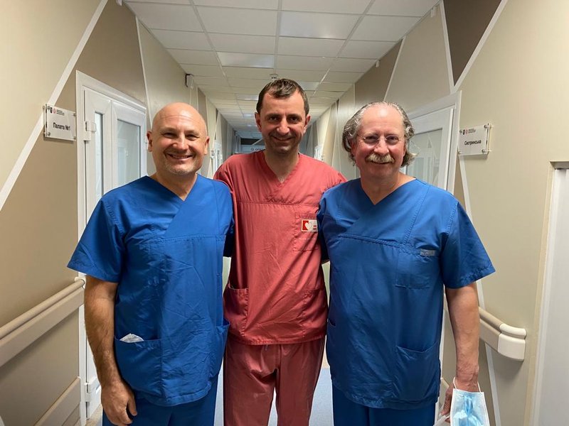 Prof. Marek Myślak (pierwszy z lewej) w szpitalu we Lwowie Fot. archiwum prof. Marka Myślaka