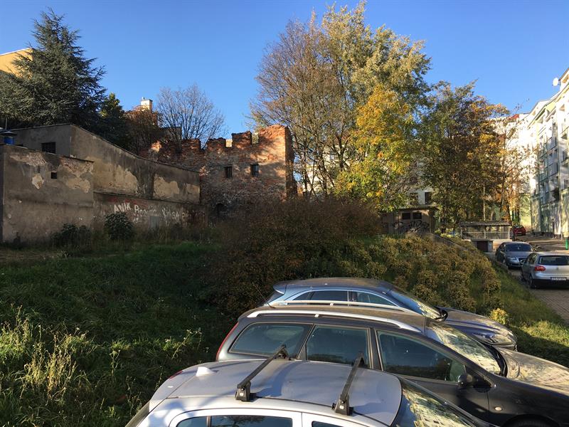 Ów mur mijał każdy, kto przez kładkę nad ul. Wyszyńskiego wędrował w stronę pl. Tobruckiego lub przeciwnie - podążał ku katedrze i pl. Orła Białego. Pozostałość dawnej zabudowy Starego Miasta o bliżej nieznanym pochodzeniu i dość zagadkowej przeszłości.