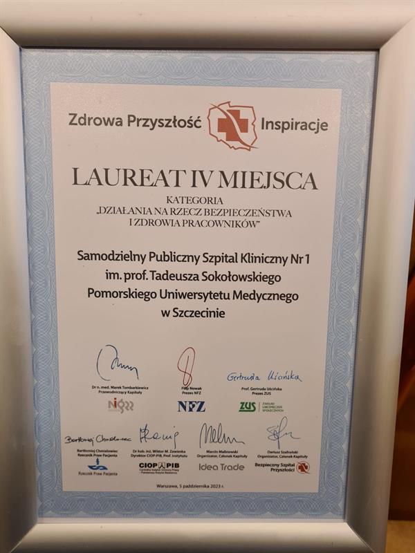 Szpital kliniczny przy ul. Unii Lubelskiej w Szczecinie zdobył sześć wyróżnień w siedmiu kategoriach konkursu „Zdrowa Przyszłość - Inspiracje". To oznacza, że doceniono każdy z sześciu zgłoszonych projektów. Największy sukces placówka odnotowała w kategorii „Innowacyjny szpital - zarządzanie", w której drugie miejsce przyniósł jej projekt „Utworzenie Centrum Leczenia Biologicznego".