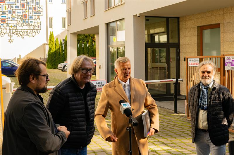 Dwa ogromne murale zdobią ściany nowej siedziby Urzędu Marszałkowskiego. Można je podziwiać od strony ulicy Mazurskiej. Zaprojektował je malarz Andrzej Fogtt, a wykonał Dominik Dziedzina z MurallStudio - Fundacji Przedsiębiorczości Młodzieżowej. Obecny na spotkaniu był również architekt Wojciech Bal - „dobry