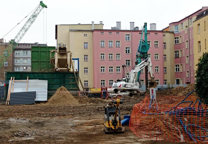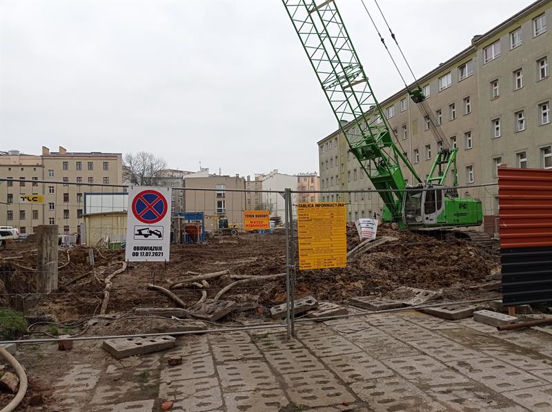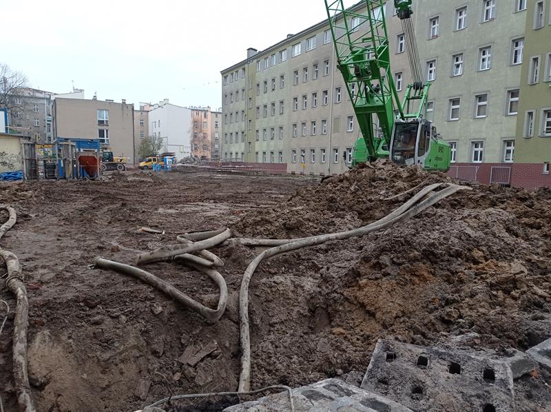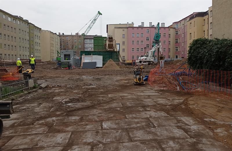 Od połowy lipca br. wnętrze szczecińskiego kwartału śródmiejskiej zabudowy między ulicami: Andrzeja Małkowskiego, ks. Bogusława X, Królowej Jadwigi i Bohaterów Getta Warszawskiego w Szczecinie zamieniło się w plac budowy. To co teraz tam się dzieje jest ledwie wstępem do zasadniczych robót przy przekształcaniu przestrzeni między kamienicami. Prace zasadnicze powinny ruszyć w styczniu i będą związane z wykopami pod mający tam stanąć dwupoziomowy parkingowiec. Inwestycja przy urządzaniu podwórzy i wznoszeniu pozostałej zaplanowanej nowej zabudowy ma zakończyć się w pierwszym kwartale 2024 roku.
