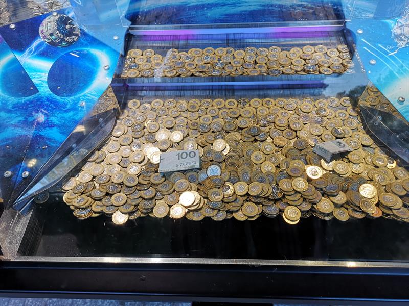 To widok często spotykany na ulicach nadmorskich miejscowości. Maszyny wypełnione złotówkami lub „dwójkami" kuszą wczasowiczów, którzy muszą wrzucić monetę. Ta ma spaść w odpowiednie miejsce na tacę z innymi monetami, by spowodować ich obsunięcie. Monety, które zlecą do pojemnika, są nasze. Talerz wykonuje ruchy posuwisto-zwrotne i nie zawsze nasza moneta spadnie tam gdzie powinna, by spowodować wygraną. Są tacy co twierdzą, że monety nigdy nie spadają.