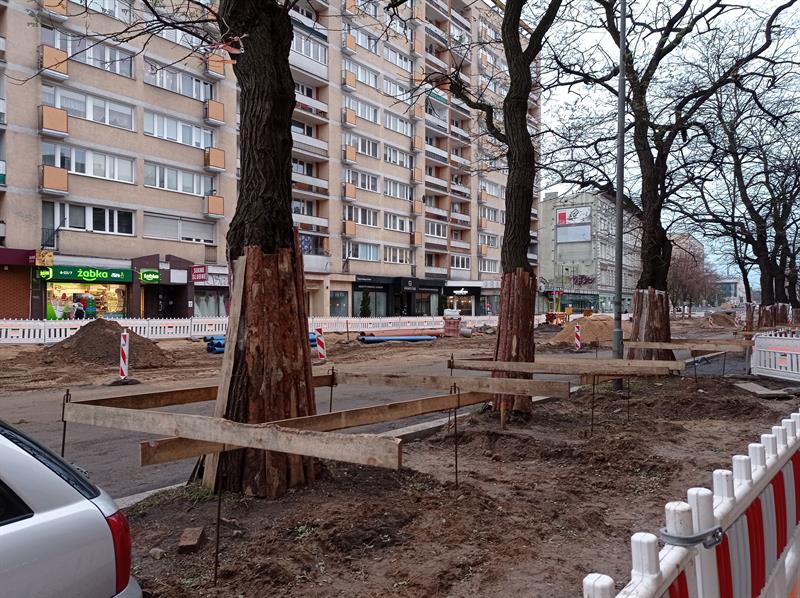 Trwa przebudowa szczecińskiej al. Wojska Polskiego. W miejscach gdzie instalacje podziemne zostały już wykonane, powoli zaczynają się wyłaniać pasy nowych jezdni i poboczy. Mijają ledwie trzy miesiące przeobrażania śródmiejskiego odcinka tej arterii w deptak z parkingami pod drzewami pośrodku, ale można pokusić się już o pierwszy bilans jesiennych poczynań wykonawcy, którym jest gdyńska spółka MTM.