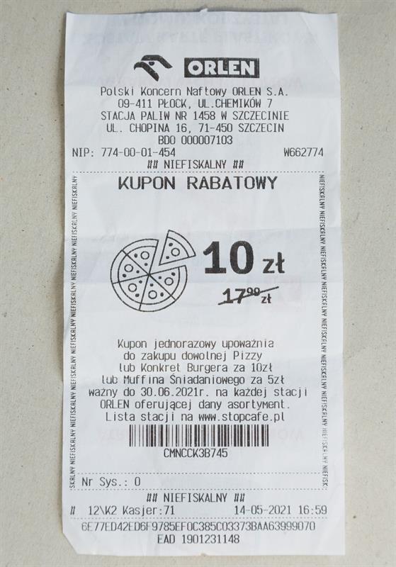 Z tym że najczęściej zabawa kończy się na odbiorze kuponu. Bo żeby dostać pizzę, trzeba mieć jeszcze dużo szczęścia. Pan Dariusz przyniósł do redakcji aż dziewięć kuponów rabatowych uprawniających do wzięcia udziału w akcji. Oznacza to, że w maju zatankował na stacji