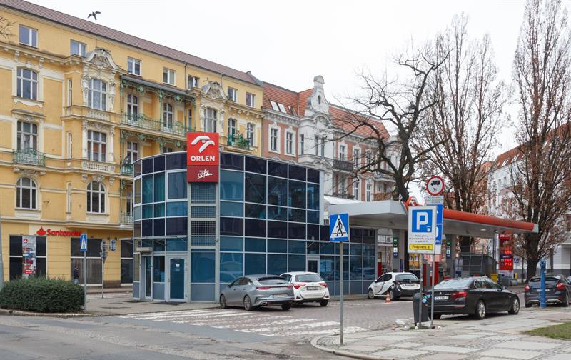 Miejsce lokalizacji stacji benzynowej nie budzi żadnej wątpliwości: ulica Mazurska (adres stacji - al. Piłsudskiego 6A). Jest to jedna z nielicznych stacji benzynowych, jaka ostała się w mieście, a działała jeszcze przed wojną.