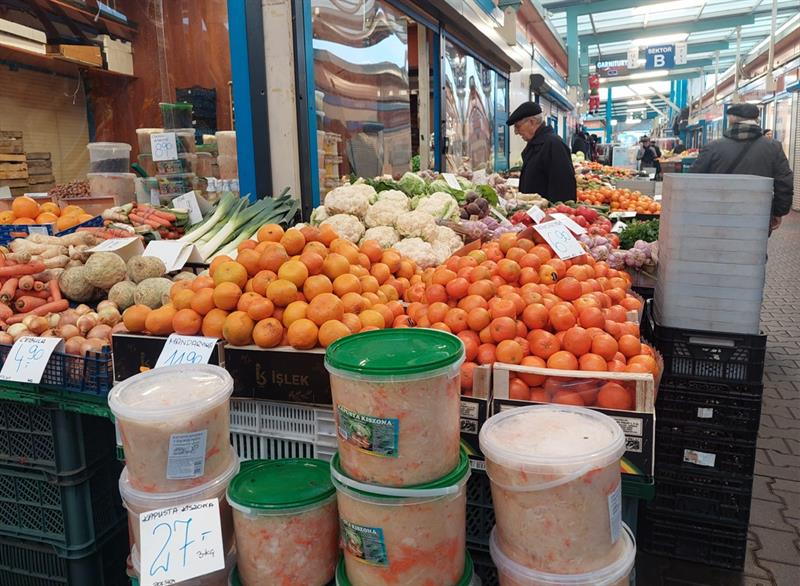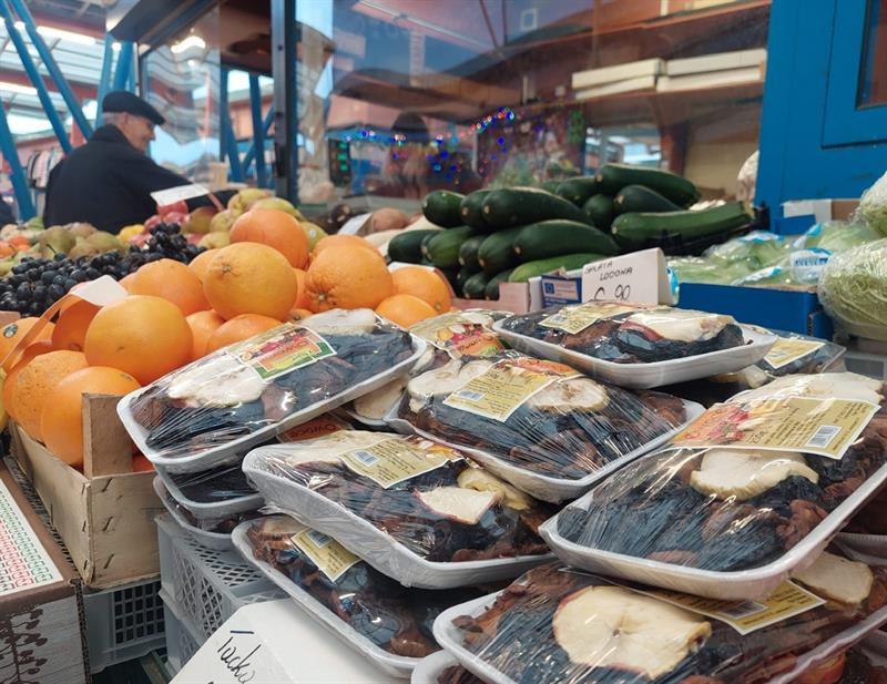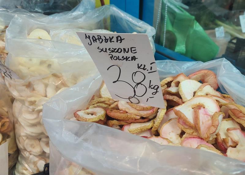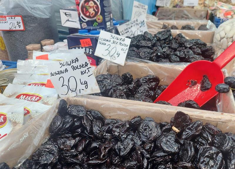Na targowisku kupimy wszystko - od warzyw i owoców, po mięso i ryby, ale długich kolejek do straganów i sklepików jeszcze nie ma. Klienci kupują na razie półprodukty: kapustę kiszoną po 9 zł za kg, susz do wigilijnego kompotu po 7,90 zł za tackę. Niektórzy komponują produkty samodzielnie: jabłka i gruszki w plastrach są tu po 38 zł, śliwki wędzone i suszone po 30 zł. Schodzą orzechy włoskie i laskowe po 48 zł, suszone figi po 40 zl, migdały po 46 zł. Na straganach piętrzą się korzenie chrzanu, białe (3 zł za kg) i włoskie kapusty (9 zł za sztukę). Kto nie pomyślał o zakwasie na wigilijny barszcz, ma na to ostatnią szansę, kwaszenie buraków (3,5 zł za kg) odbywa się bowiem przeważnie przez siedem dni. Dla zapominalskich większość warzywniaków oferuje gotowe koncentraty po 7-9