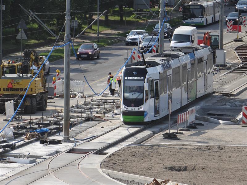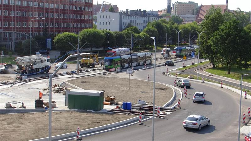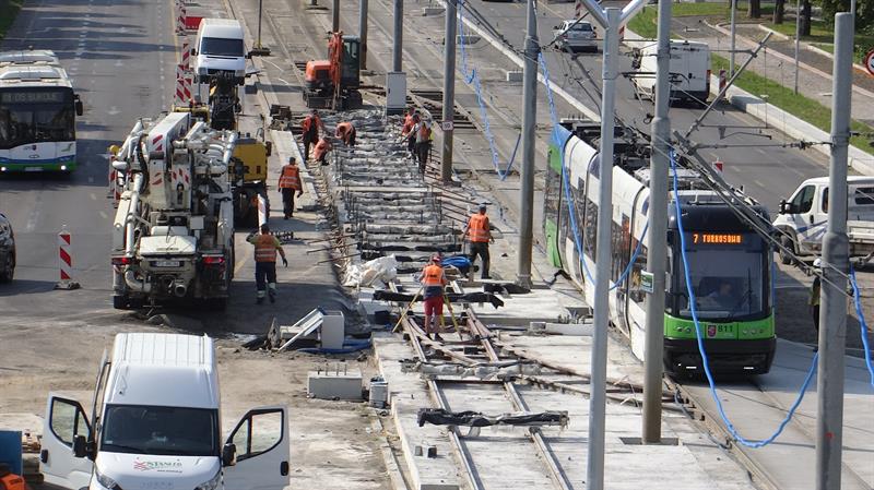 Od wielu tygodni w samej ul. Energetyków prace drogowców ze spółki MTM i podwykonawców skupiają się na przebudowie pasa torowiska tramwajowego z częściowo wyłączonym z użytku dla tramwajów torem w kierunku Basenu Górniczego, na odcinku od wysokości Euroafriki do mostu Portowego nad Parnicą. A to z uwagi na konieczność dowiązania go relacjami skrętnymi na nowym rozjeździe w obrębie wyspy ronda Portowców, który wyprowadza torowisko w kierunku ul. Władysława IV z myślą o kontynuacji mającego się tam zaczynać dodatkowego połączenia z lewobrzeżem przez most Kłodny. Tam do finału brakuje już niewiele, zespawane szyny kawałek po kawałku zalewane są