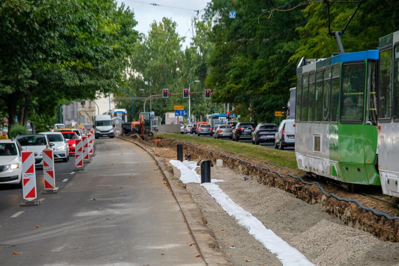 Trwa remont torowiska w ciągu ul. Matejki - na odcinku od ul. Piłsudskiego do ul. Malczewskiego. Rozpoczął się pod koniec lipca. Powinien się zakończyć w listopadzie.