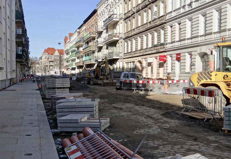 Od roku trwają prace drogowe na ul. Bohaterów Getta Warszawskiego oraz na odcinkach ul. Królowej Jadwigi. Na przebudowę wciąż jeszcze czeka także krótki odcinek ul. ks. Piotra Ściegiennego do al. Piastów w szczecińskim śródmieściu. Jeśli wykonawca dotrzyma terminu, to w nowym kształcie powinny być one w pełni przejezdne późną jesienią, w listopadzie tego roku. A póki co od środy (10 bm.) kolejne zmiany w organizacji ruchu w tym rejonie.
