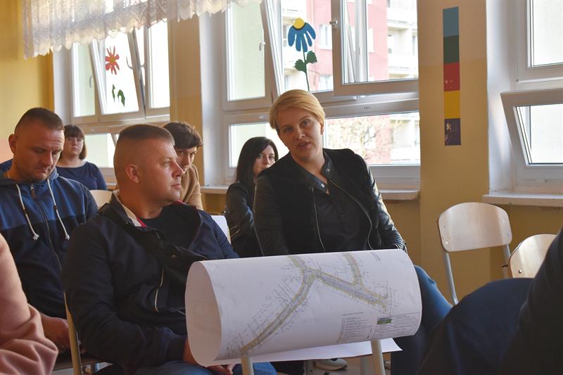 Projektanci Tomasz Szynkowski i Łukasz Żarnowski z biura projektowego Proinvest w Szkole Podstawowej nr 5 przedstawili mieszkańcom założenia projektu. Zgodnie z nim na ul. Chrobrego będzie po przebudowie nieco mniej miejsc do parkowania niż obecnie. Miasto stawia na zieleń.