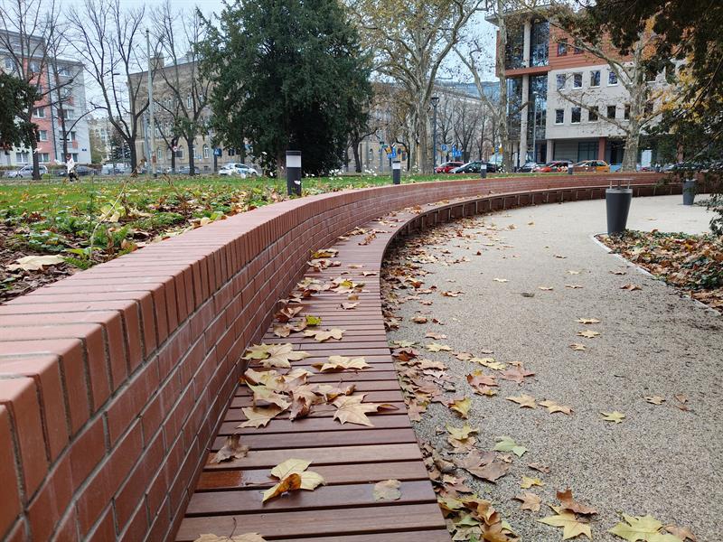 Jednak nie mniejszą rolę w przemianie tej przestrzeni odgrywa zieleń. Nie tylko zachowano aleje pomnikowych platanów, ale również wszystkie elementy tzw. małej architektury - w tym oryginalną łukową ławkę o długości niemal 32 m - podporządkowano nowym nasadzeniom. Na głównych, nieco wyniesionych, rabatach - od strony Urzędu Morskiego oraz al. 3 Maja - posadzono blisko 400 hortensji ogrodowych i ponad 300 host, wkomponowano ozdobne trawy i byliny, m.in. bodziszki, narecznice, tawułki, zawilce (po 490 z każdej strony), a obrazu całości