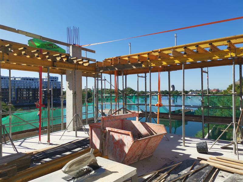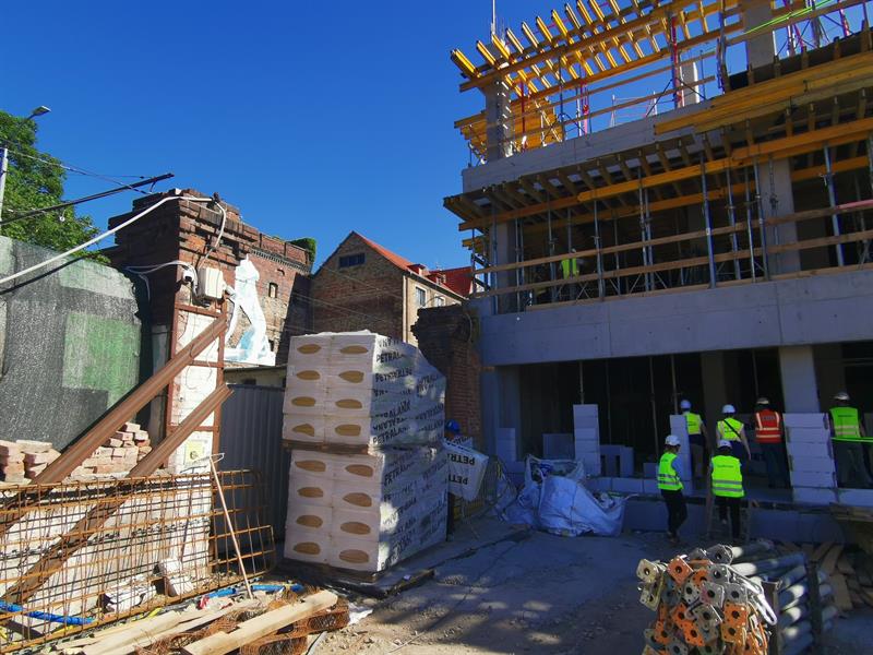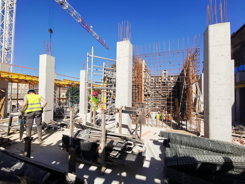 - Budynek przy ul. Kolumba 80 oparto łącznie na 115 palach, stabilizujących grunt tuż nad linią wody - informuje Marek Synowiecki, rzecznik prasowy RZGW Szczecin. - Kolejne 200 pali wzmocniło teren pod przyszłym parkingiem. Rozpoczęto również budowę sąsiadującego z miejscami parkingowymi budynku gospodarczego. W głównym gmachu został natomiast wylany strop nad drugim piętrem, ekipy budowlane kontynuują prace na trzeciej, dobrze już widocznej kondygnacji. W piwnicach i na parterze układane są również instalacje wodno-kanalizacyjne,