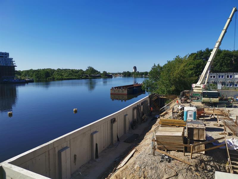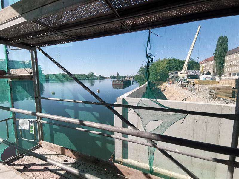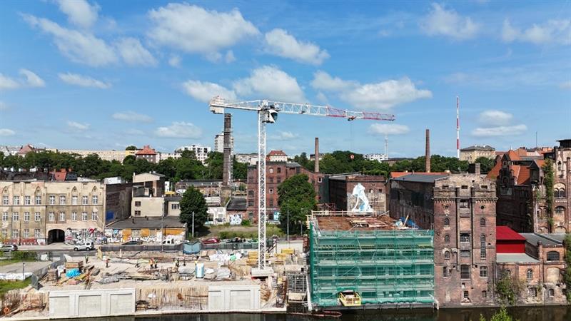 Tuż nad Odrą, przy ul. Kolumba 80, trwa budowa nowej siedziby Wód Polskich, Regionalnego Zarządu Gospodarki Wodnej w Szczecinie. Już dawno wyrosła z poziomu fundamentów i piwnic. To część tzw. szczecińskiej Wenecji, malowniczej zabudowy przy rzece - zróżnicowanej pod względem wysokości przemysłowej architektury ceglanej. Ekipy firmy Budimex, generalnego wykonawcy inwestycji, zakończyły też budowę ścian nabrzeży nad Odrą. Zaplanowano tu przystań dla łodzi i małych jednostek, które będą mogły zacumować w bezpośrednim sąsiedztwie siedziby szczecińskiego RZGW.