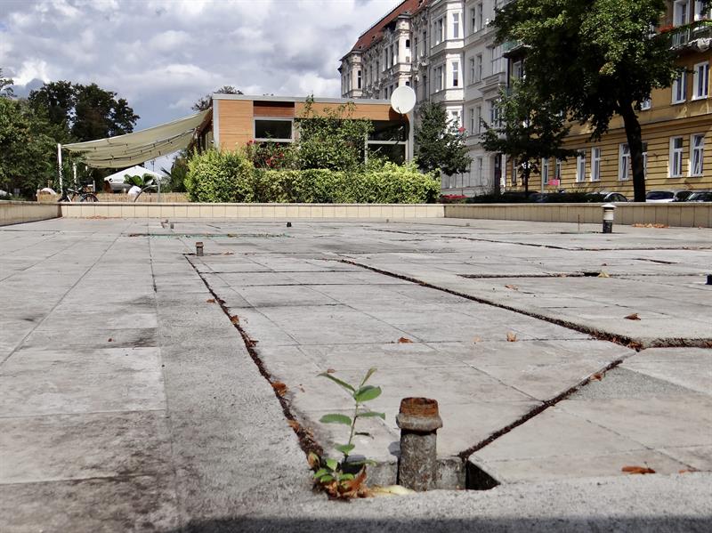 Jednak teraz suche baseny fontann szpecą otoczenie postępującą degradacją.