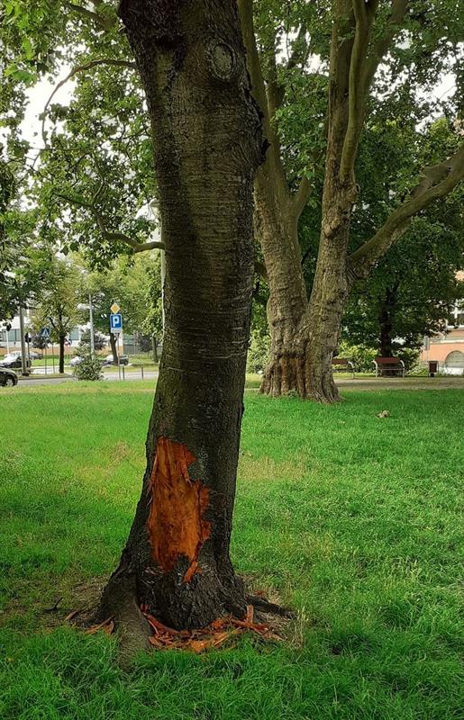 Jakim trzeba być psycholem i dewiantem żeby tak zniszczyć piękne drzewa ONE UMRĄ przez tą bezmózgą kreaturę mam nadzieję że zostanie złapany i ukarany, zapłaci za zniszczoną zieleń a panowie ze straży i policja niech szuka w pobliskich mieszkaniach komunalnych bo ostatnio magistrat sprowadził do centrum całe stado nierobów, świrów i pijusów wystarczy spojrzeć na meneli siedzących przed barem rab- okupują murek, kwiaty w klombie zniszczone leży tam pełno puszek i butelek po winach...