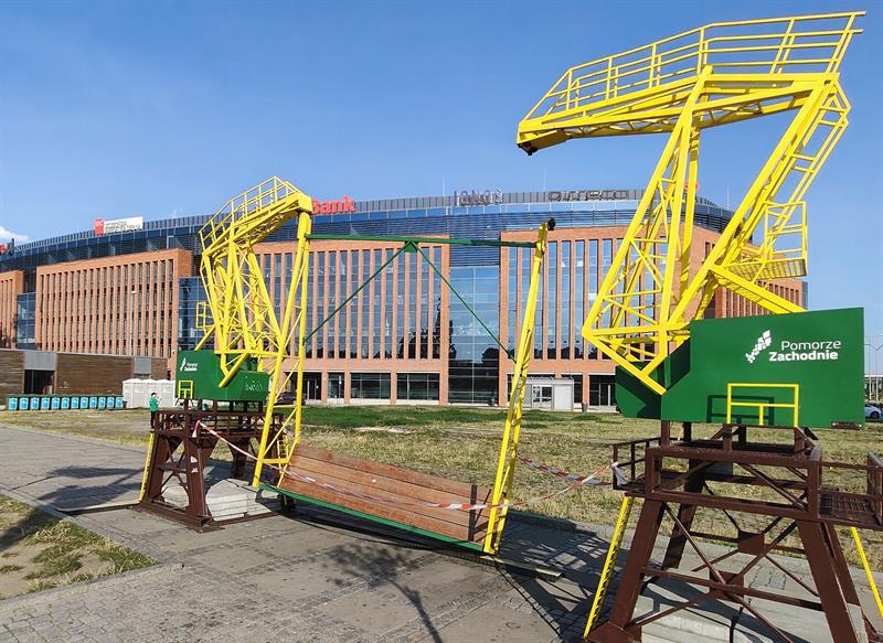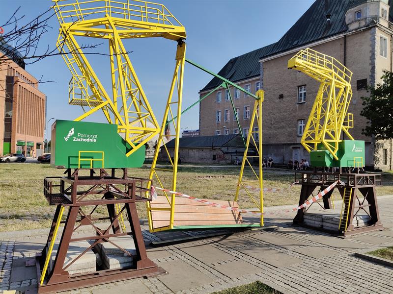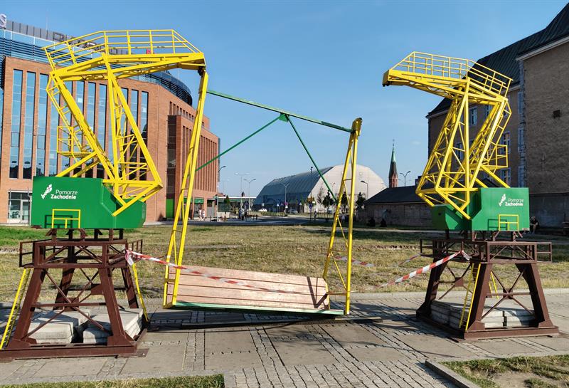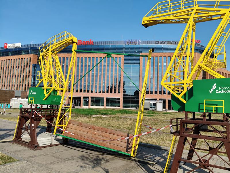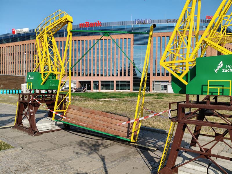 Jedno z mocowań zerwane. Siedzisko opadło na ziemię. Znów ktoś uszkodził jedną z najchętniej przez szczecinian i turystów obleganych "zabawek" promujących Pomorze Zachodnie - huśtawkę na dźwigozaurach.