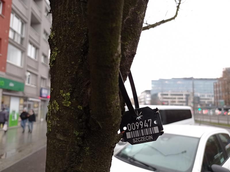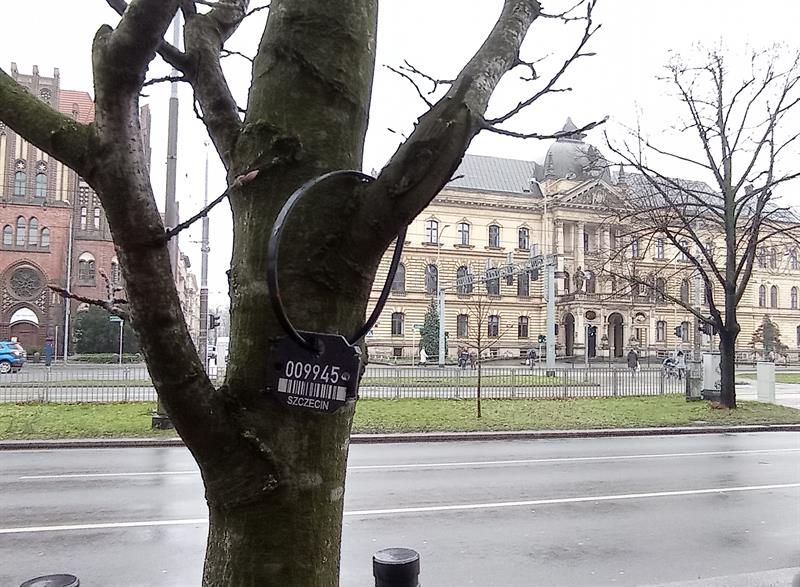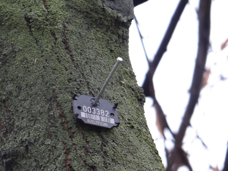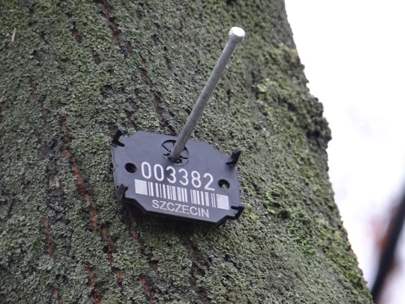 Jeżeli na drzewie widać czarną metalową tabliczkę z numerem, kodem kreskowym i oznaczeniem SZCZECIN - przybitą do pnia tzw. szpilką arborystyczną albo zawieszoną na jednym z dolnych konarów młodej sadzonki - to znak, że zostało ono zinwentaryzowane: co do lokalizacji, nazwy gatunkowej, średnicy pnia, korony i wysokości. Czyli m.in. także włączone do Systemu Informacji Przestrzennej Miasta Szczecin.