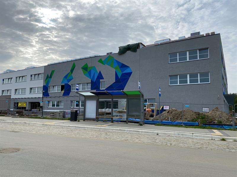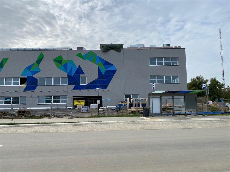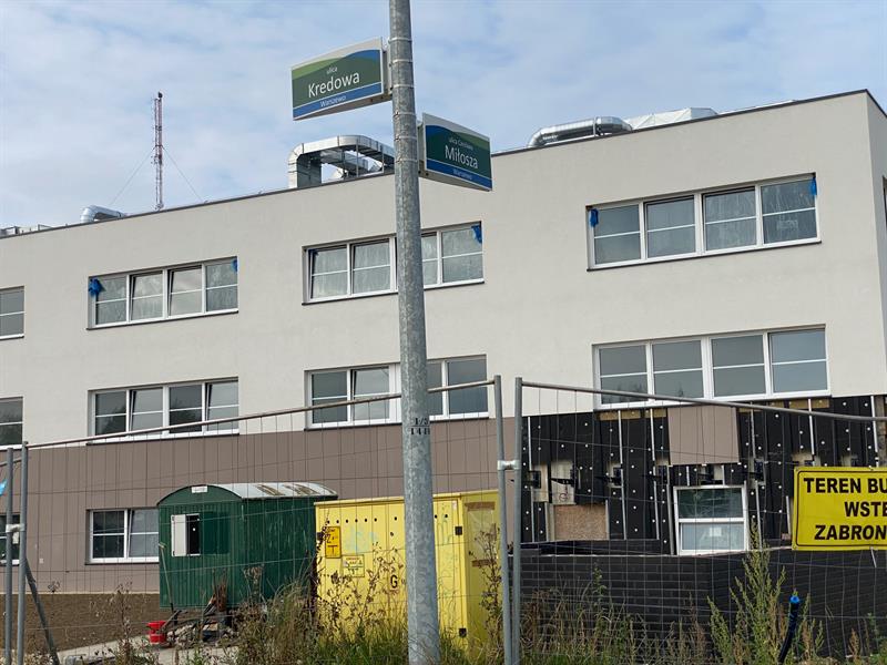 Obecnie prace wykonywane są zarówno w części wewnętrznej i zewnętrznej obiektu. Wewnątrz trwają zaawansowane roboty wykończeniowe. Kontynuowane są prace tynkarskie i posadzkarskie: okładziny ścian i posadzek z płytek, trwa montaż sufitów podwieszanych. Jednocześnie pracują instalatorzy i technicy odpowiedzialni za