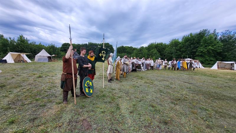 Już z daleka wzrok odwiedzających przyciągało obozowisko, w którym swoje namioty rozstawili dawni rzemieślnicy i wojowie. Dużym zainteresowaniem cieszyły się licznie przygotowane przez rekonstruktorów pokazy, w tym inscenizacja historyczna „Dwie koronacje". Nie zabrakło też kramów ze wczesnośredniowiecznymi, wytwarzanymi na miejscu wyrobami. Była nawet kuchnia z epoki z okraszonymi dymem wyrobami. Pokazy walk i strzelania z łuku to dodatkowe atrakcje. Organizator, którym było Stowarzyszenie Hereditas Pomeraniae, przygotował także ciekawe prelekcje. A wszystko oparte na gruntownej wiedzy historycznej.
