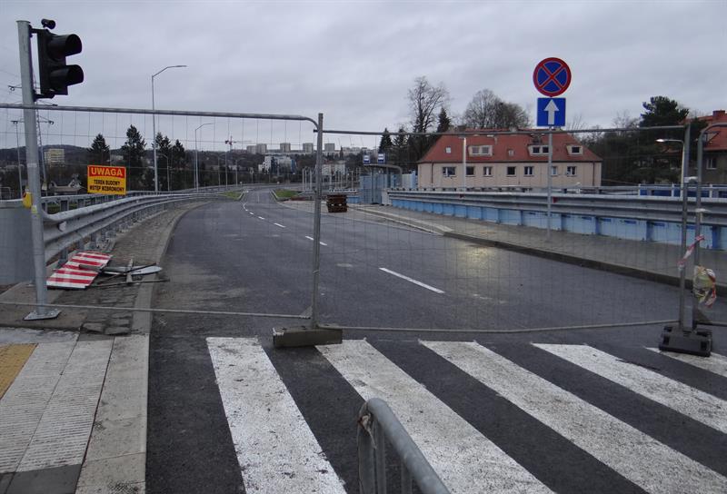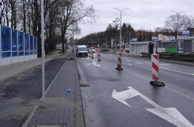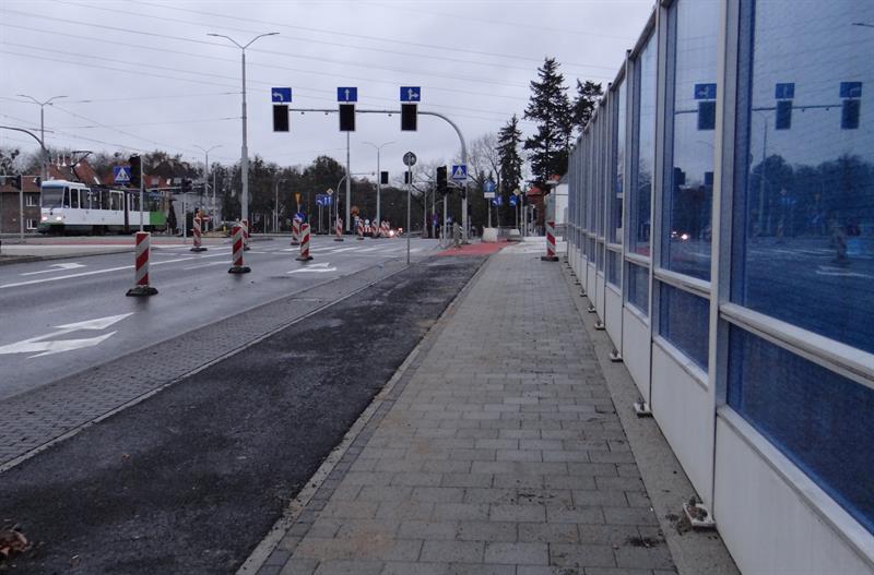Węzeł Łękno i obwodnica jeszcze przed pełnym otwarciem dla ruchu kołowego. Tam wciąż trwają prace i to nie koniec inwestycji. A tramwaje i autobusy na nowych, stałych przystankach w tym rejonie będą się zatrzymywać dopiero od soboty 8 stycznia. Fot. Mirosław WINCONEK