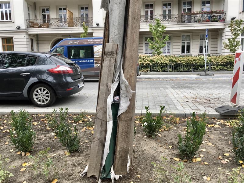 - Worków do kropelkowego podlewania drzew zabrakło, bo część z nich została uwięziona pod odeskowaniem pni na przebudowywanym odcinku al. Papieża Jana Pawła II - nasz „Kurier" zaalarmował Czytelnik (dane do wiadomości redakcji). - Wystarczy dobrze się przyjrzeć otulinom, które się rozsunęły pod naporem nawiezionej ziemi i nowych nasadzeń róż, a może po prostu na skutek czasu i zmiennych warunków