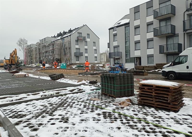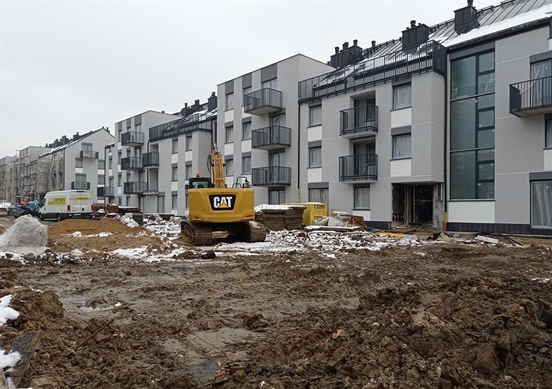 - Aktualnie inwestycja jest na etapie zamkniętego stanu surowego. Wykonano elewacje na budynkach nr 1-5, trwają roboty elewacyjne na budynku nr 6. Wewnątrz prowadzone są prace wykończeniowe. Rozpoczęto zagospodarowywanie terenu, powstają drogi, urządzane są miejsca parkingowe, chodniki i elementy małej architektury - informuje Tomasz Klek, rzecznik prasowy STBS.