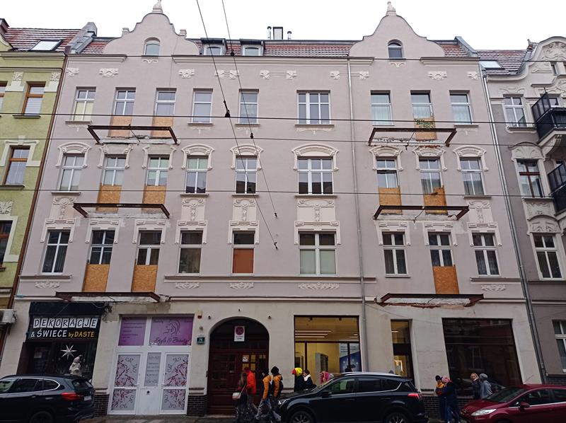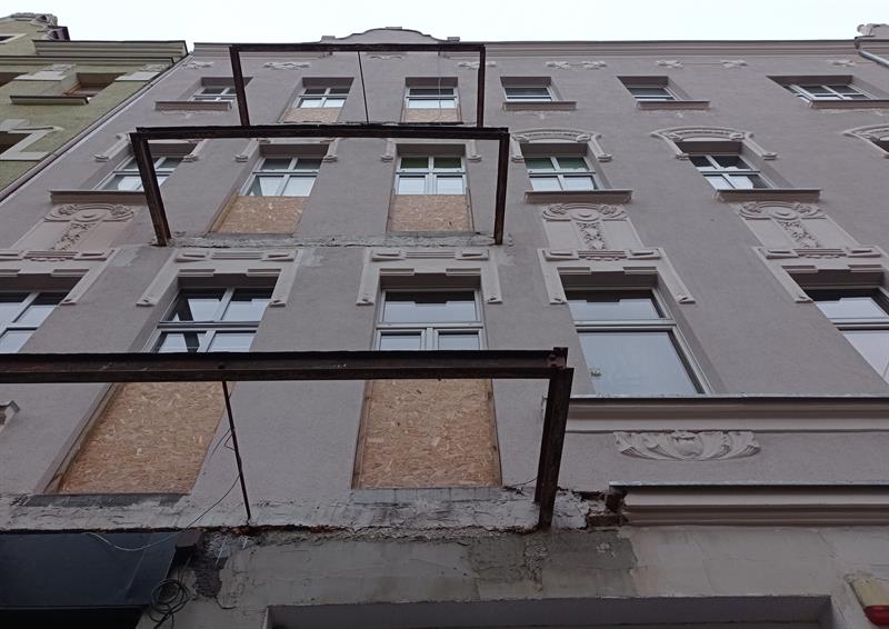 Remont elewacji kamienicy wspólnoty mieszkaniowej przy ul. Jagiellońskiej 76 w Szczecinie miał trwać góra trzy miesiące. Mija półtora roku, a jego końca nie widać. I nie wiadomo, kiedy pojawią się na piętrach fasady budynku nowe balkony.