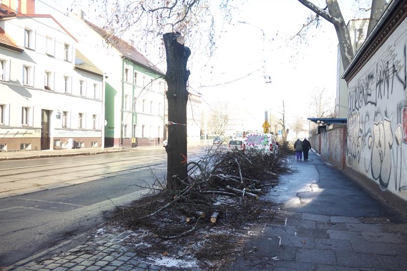 Ustaliliśmy, że wycinka drzew przeprowadzona została w związku z realizowaną w Szczecinie przebudową torowisk. Aleja Powstańców Wielkopolskich również jest częścią torowej rewolucji. Prace, które zostały przeprowadzone, to początek robót przygotowawczych w