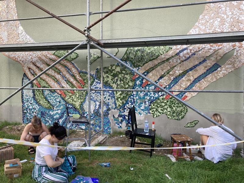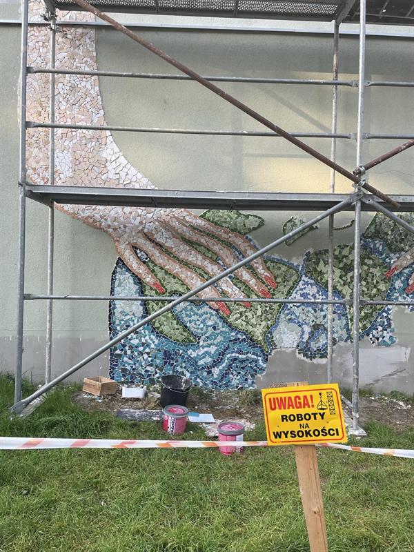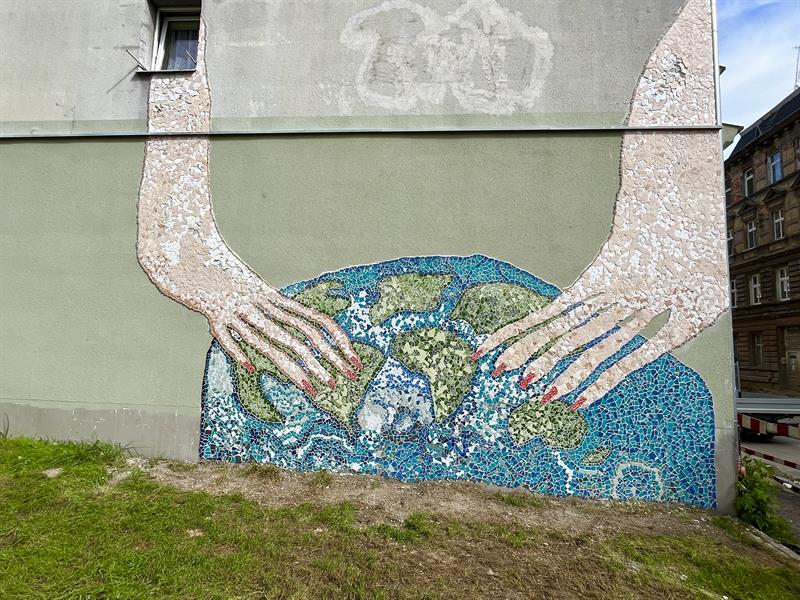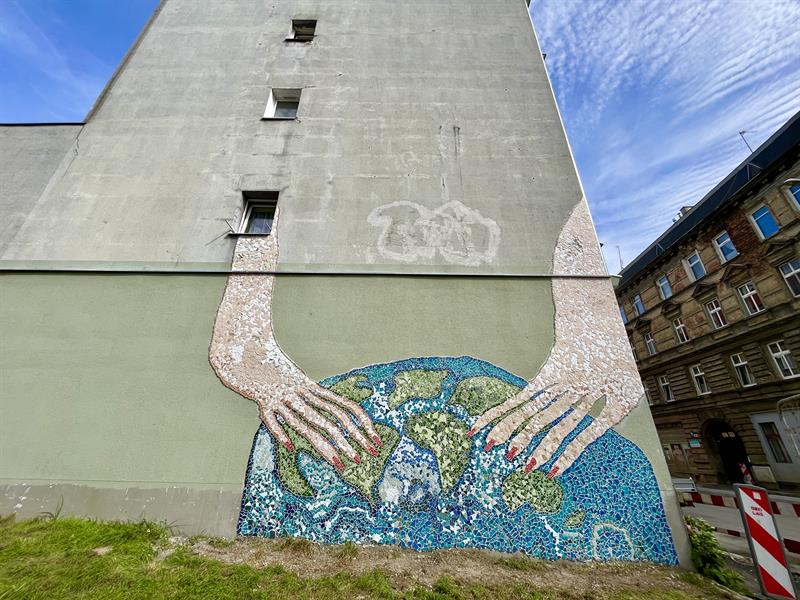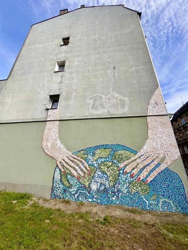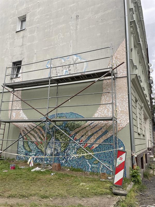 „Wyrabianie świata" - mozaika stworzona przez absolwentkę Akademii Sztuki ozdobiła kamienicę przy ulicy Kolumba w Szczecinie.